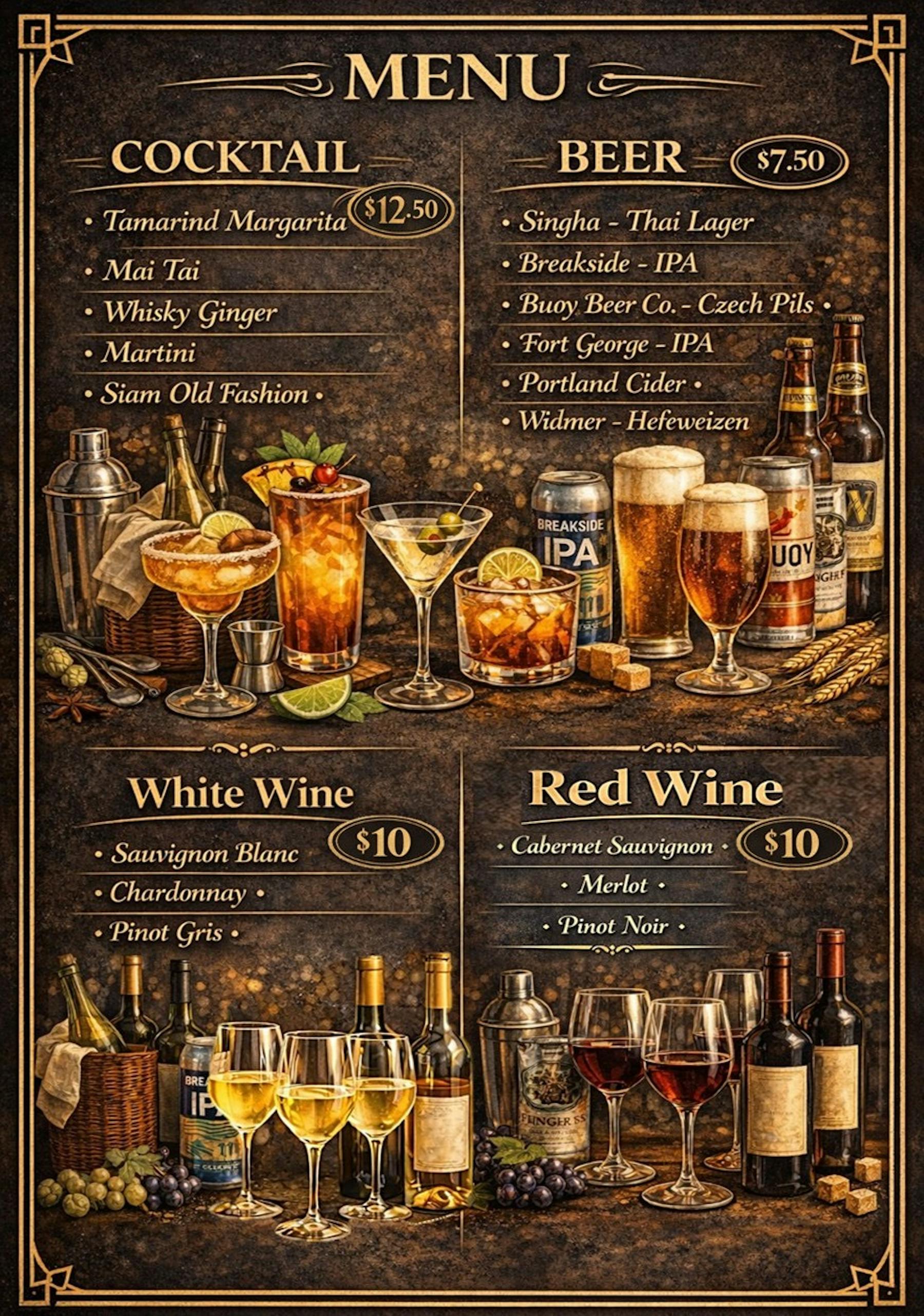 Refreshing drinks, ice-cold beers, and signature house cocktails.